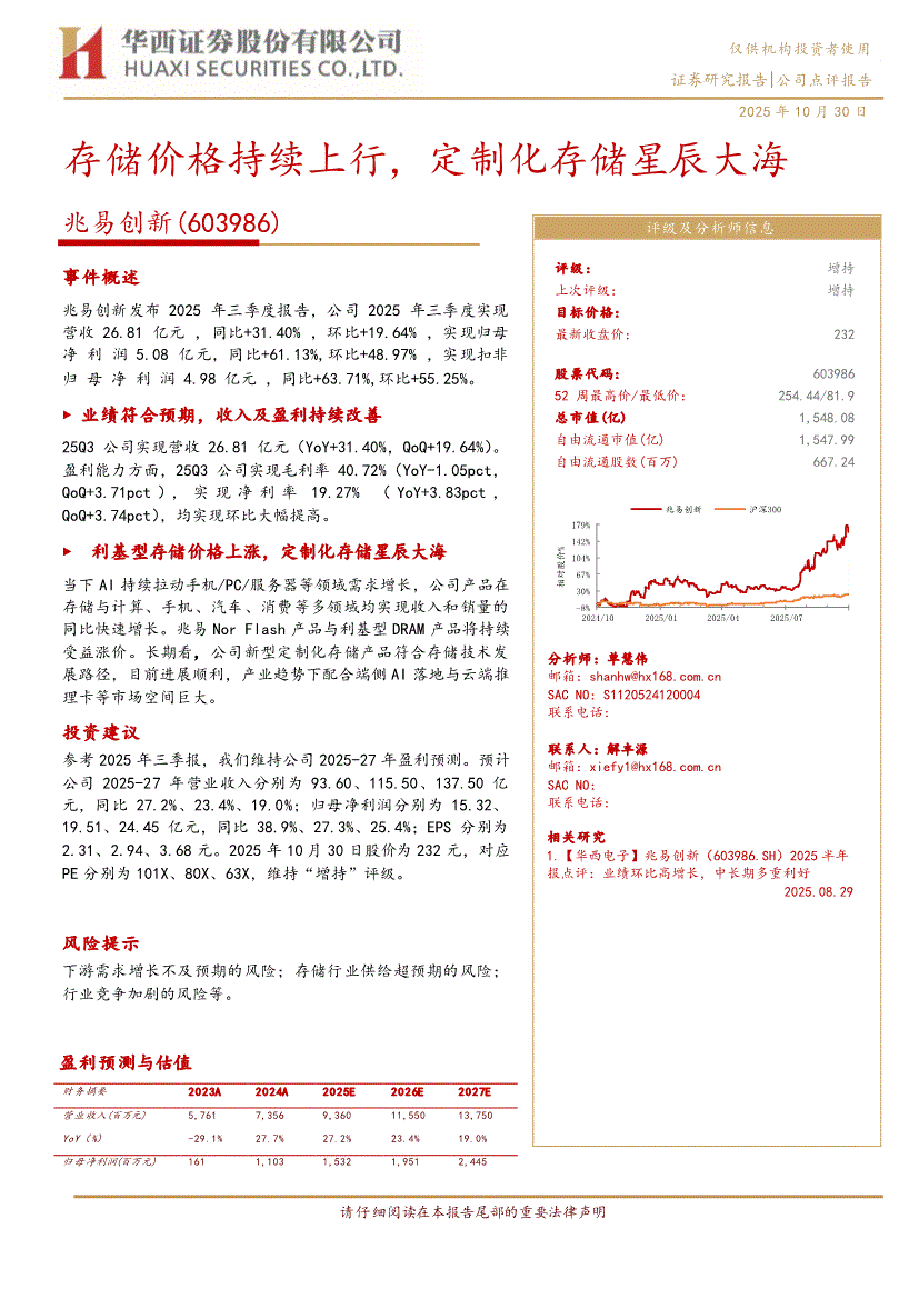 兆易创新:华西证券-兆易创新-603986-存储价格持续上行,定制化存储星辰大海-251030