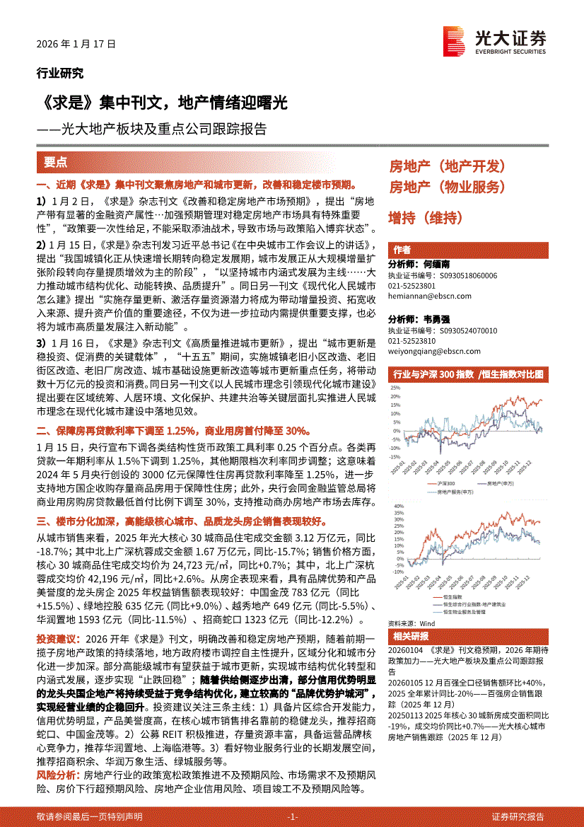 房地产行业:光大证券-房地产行业地产板块及重点公司跟踪报告:《求是》集中刊文,地产情绪迎曙光-260117