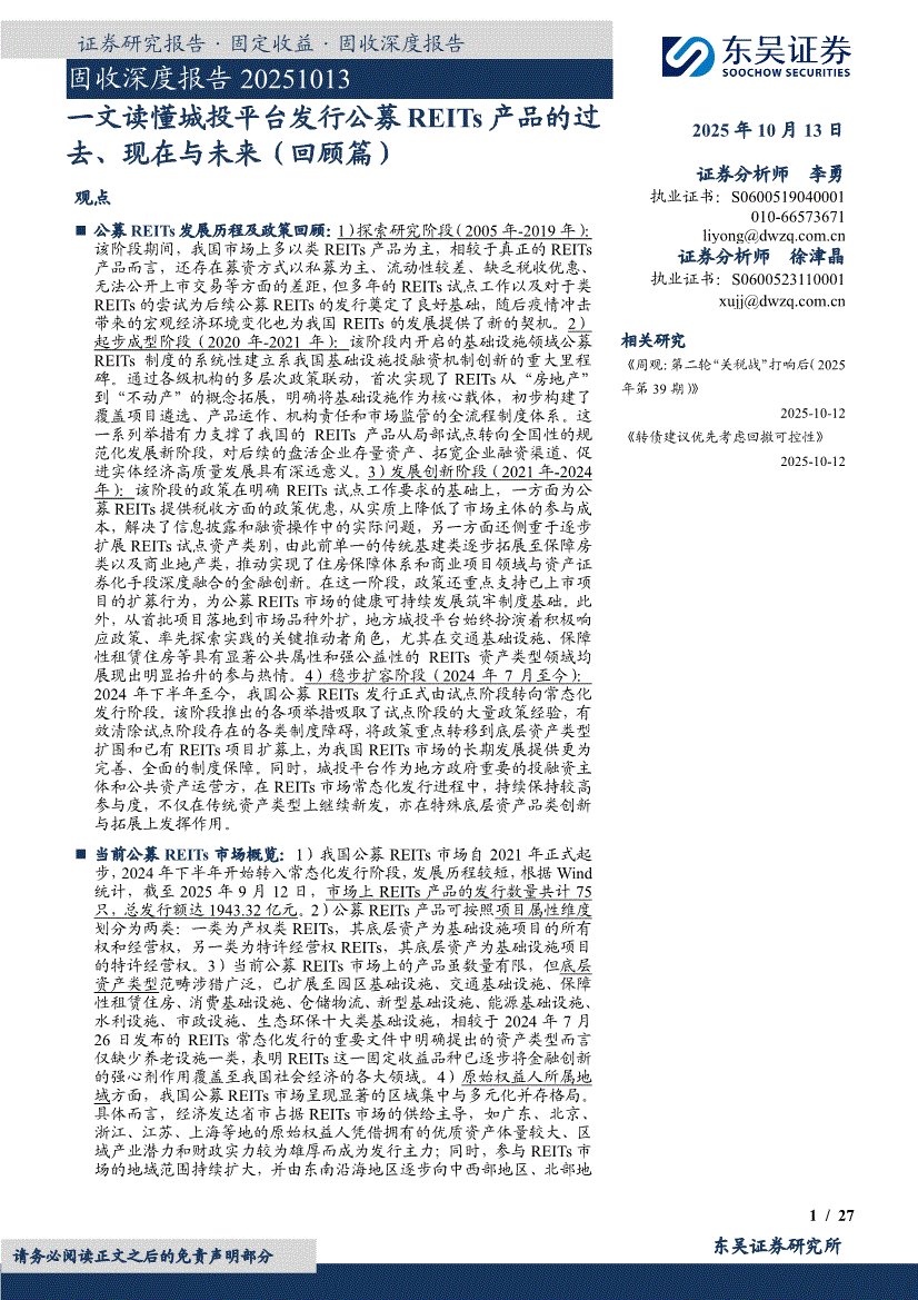 东吴证券-固收深度报告:一文读懂城投平台发行公募REITs产品的过去、现在与未来(回顾篇)-251013