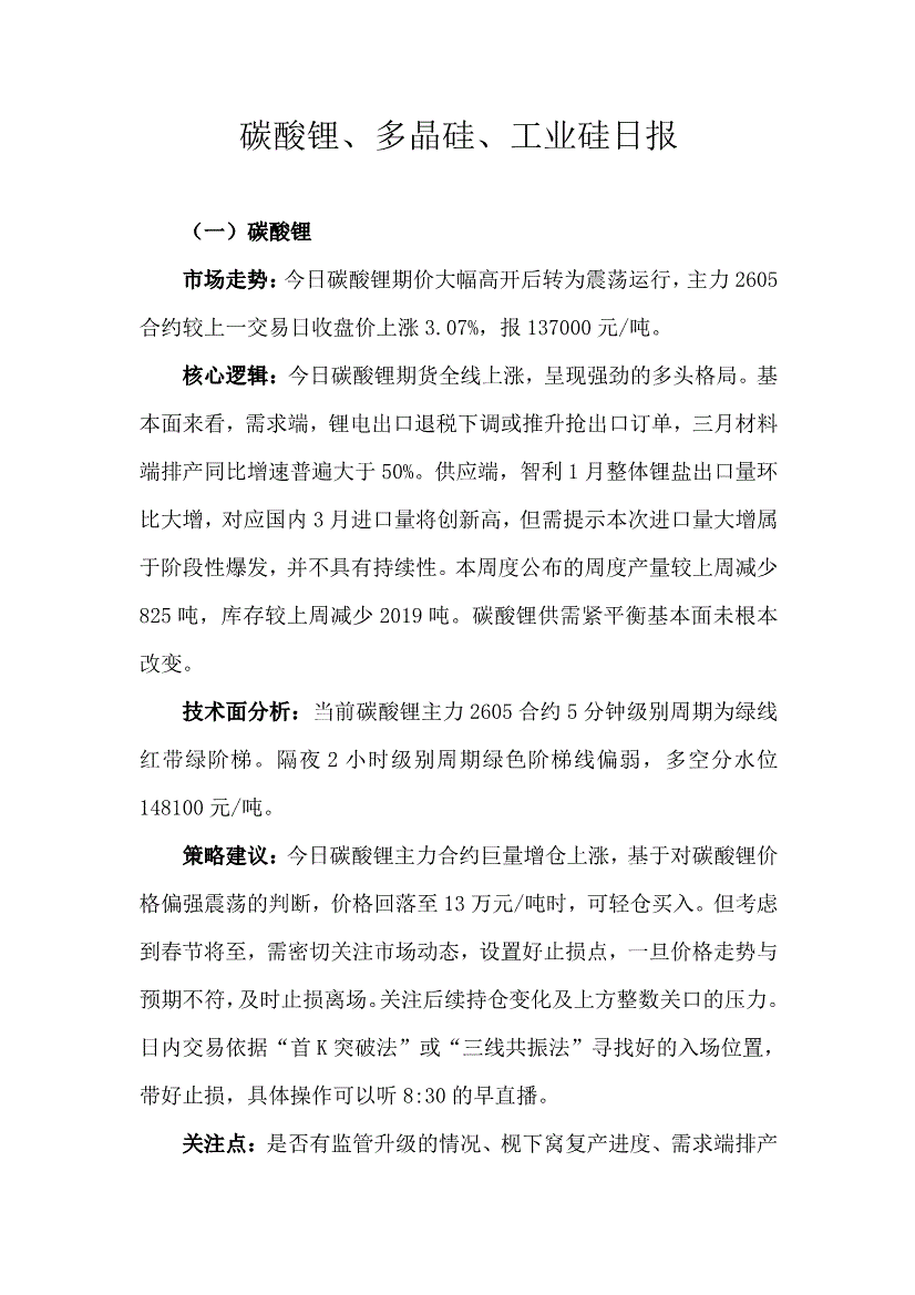 天富期货-碳酸锂、多晶硅、工业硅日报-260209