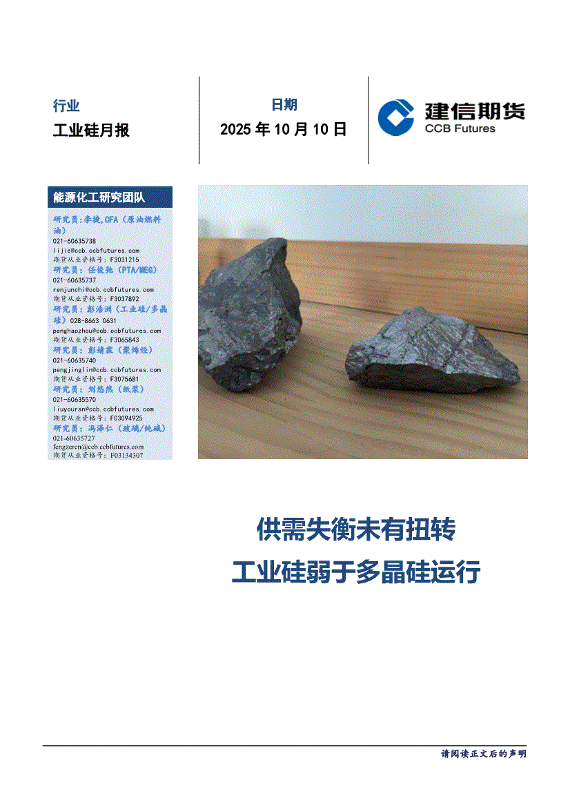 建信期货-工业硅月报:供需失衡未有扭转,工业硅弱于多晶硅运行-251010