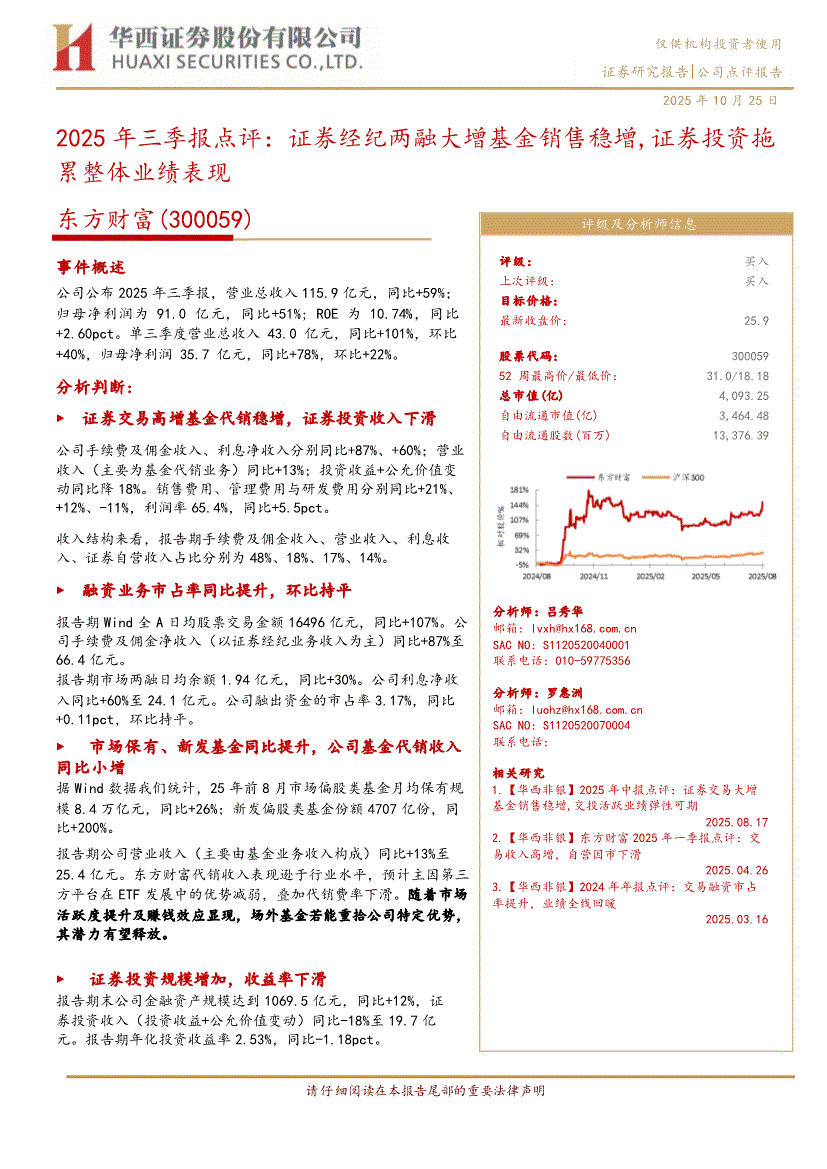 东方财富:华西证券-东方财富-300059-2025年三季报点评:证券经纪两融大增基金销售稳增,证券投资拖累整体业绩表现-251025