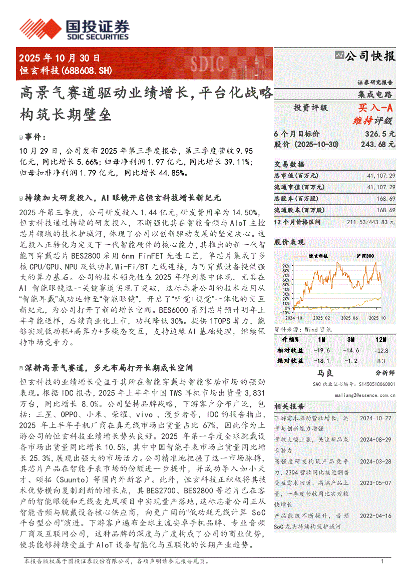恒玄科技:国投证券-恒玄科技-688608-高景气赛道驱动业绩增长,平台化战略构筑长期壁垒-251030