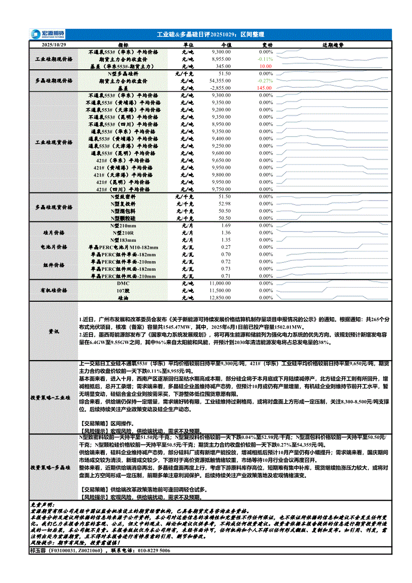 宏源期货-工业硅&多晶硅日评:区间整理-251029