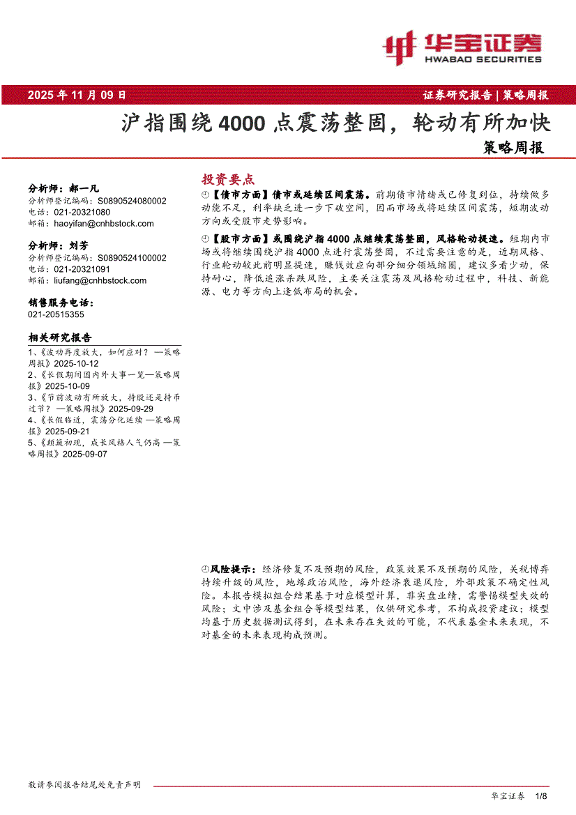 华宝证券-策略周报:沪指围绕4000点震荡整固,轮动有所加快-251109