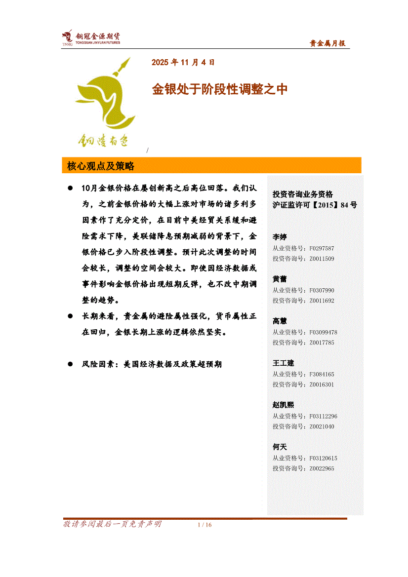 铜冠金源期货-贵金属月报:金银处于阶段性调整之中-251104