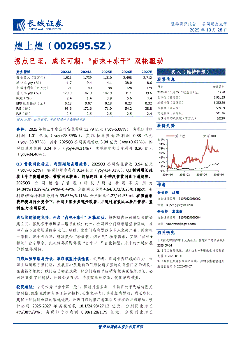 煌上煌:长城证券-煌上煌-002695-拐点已至,成长可期,“卤味+冻干”双轮驱动-251028