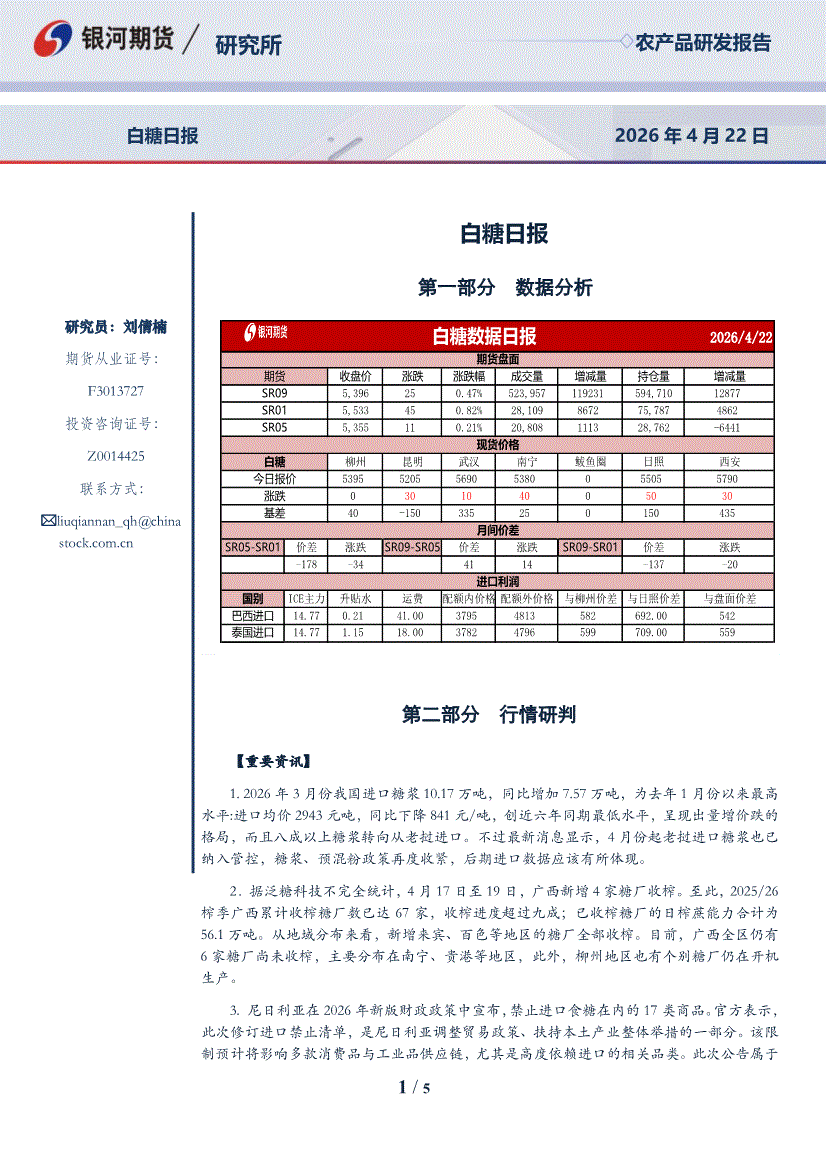 银河期货-白糖日报-260422