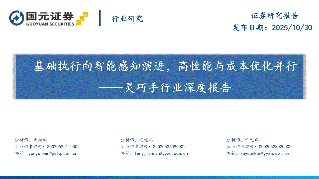 灵巧手行业:国元证券-灵巧手行业深度报告:基础执行向智能感知演进,高性能与成本优化并行-251030