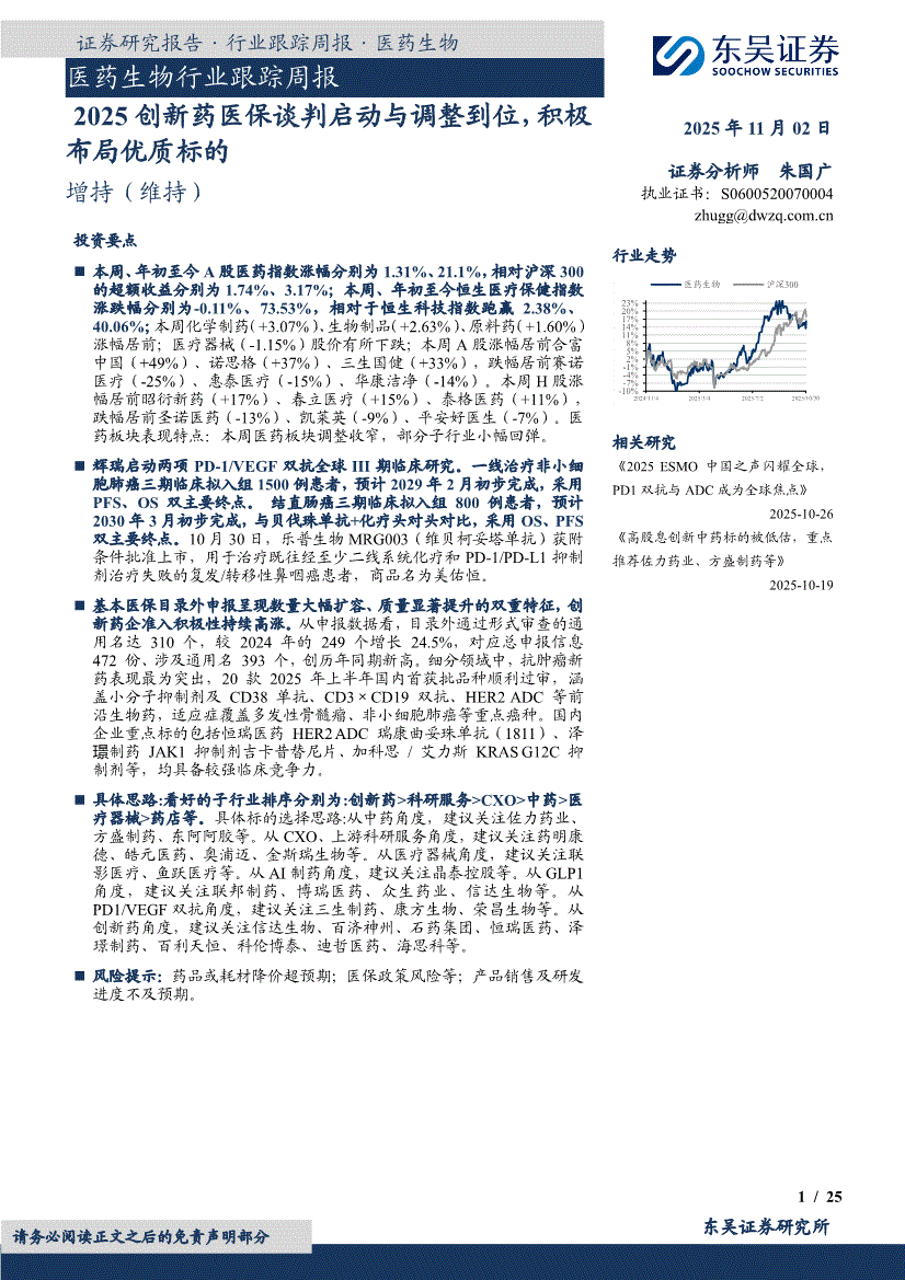 医药生物行业:东吴证券-医药生物行业跟踪周报:2025创新药医保谈判启动与调整到位,积极布局优质标的-251102