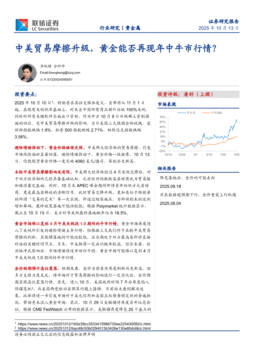贵金属行业:联储证券-贵金属行业:中美贸易摩擦升级,黄金能否再现年中牛市行情?-251013