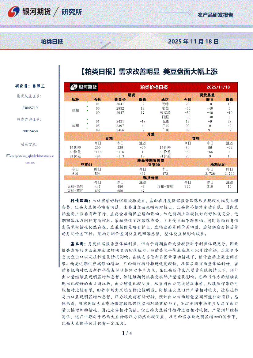 银河期货-【粕类日报】需求改善明显,美豆盘面大幅上涨-251118