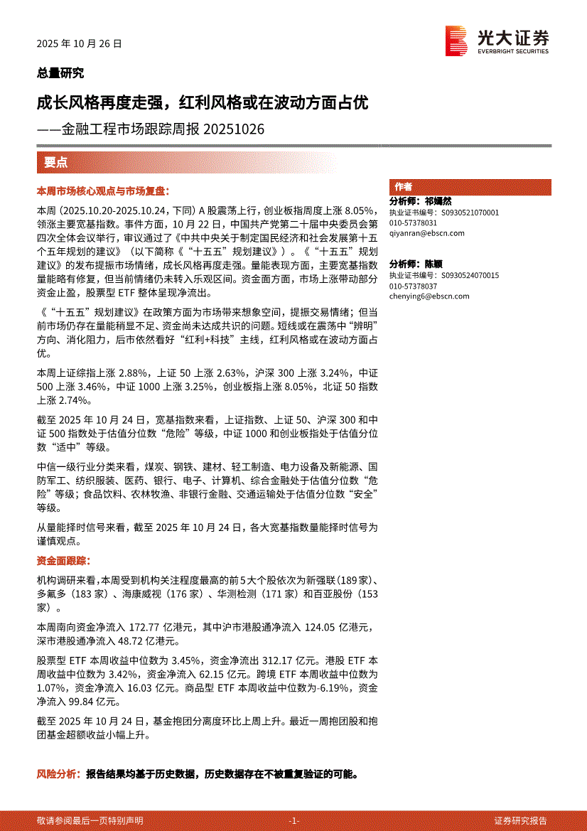 光大证券-金融工程市场跟踪周报:成长风格再度走强,红利风格或在波动方面占优-251026