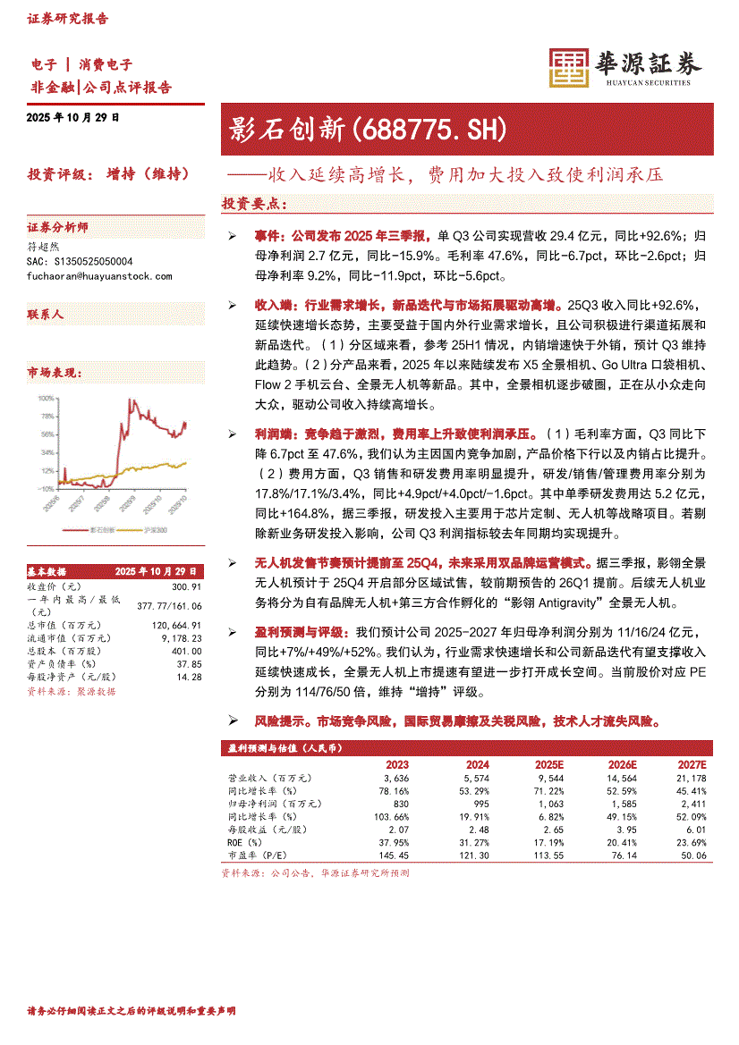 影石创新:华源证券-影石创新-688775-收入延续高增长,费用加大投入致使利润承压-251029