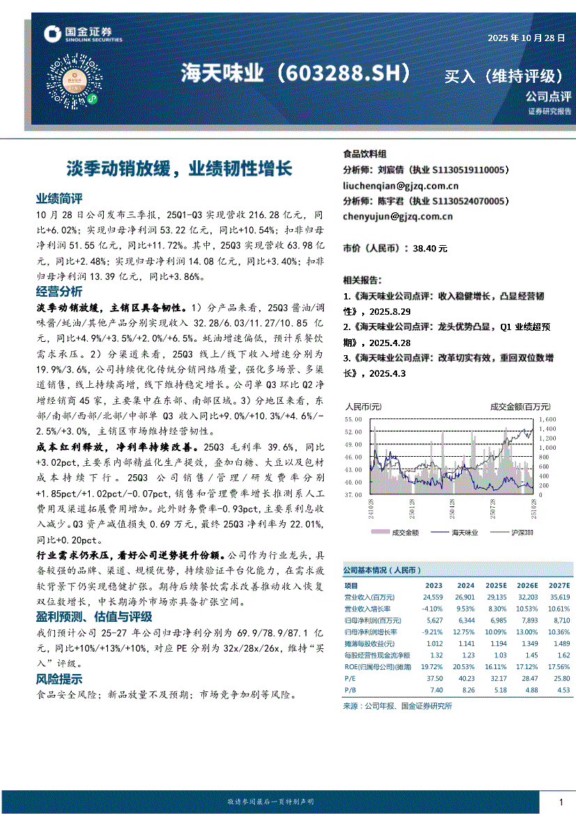 海天味业:国金证券-海天味业-603288-淡季动销放缓,业绩韧性增长-251028