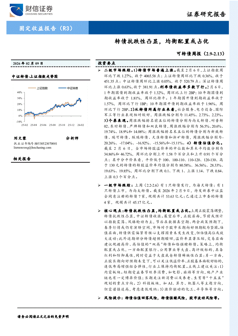 财信证券-可转债周报:转债抗跌性凸显,均衡配置或占优-260209