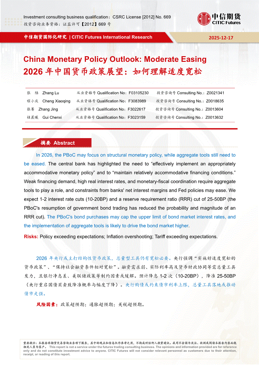 中信期货-2026年中国货币政策展望:如何理解适度宽松-251217