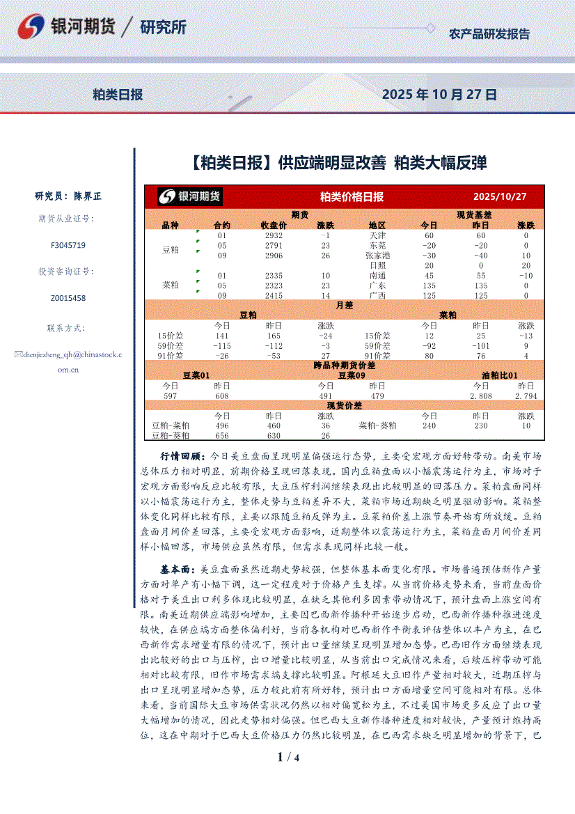 银河期货-【粕类日报】供应端明显改善,粕类大幅反弹-251027