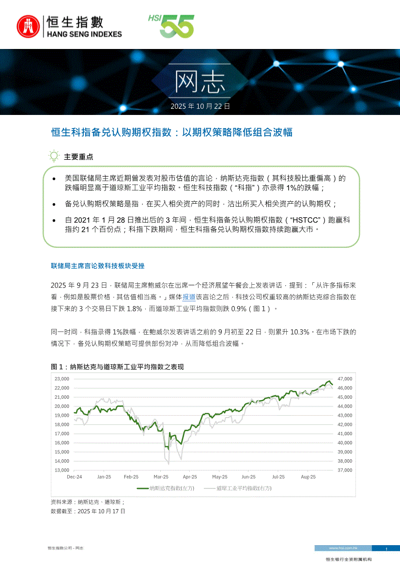 恒生指数-网志:恒生科指备兑认购期权指数,以期权策略降低组合波幅-251022