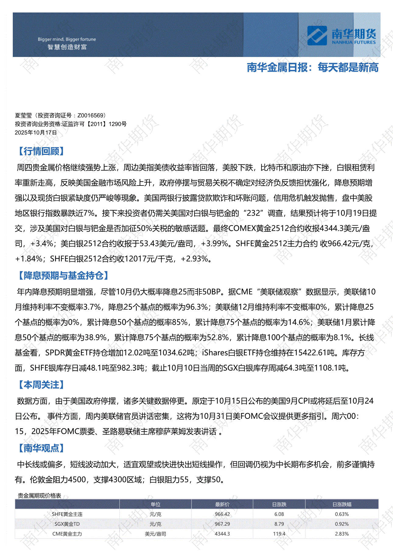 格林大华期货-一周简评:白银现货价大幅超越期货价-251010