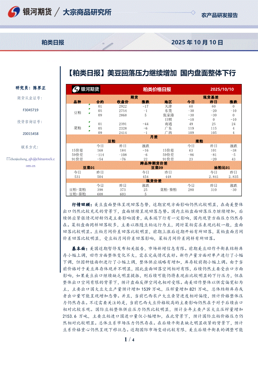 银河期货-【粕类日报】美豆回落压力继续增加,国内盘面整体下行-251010