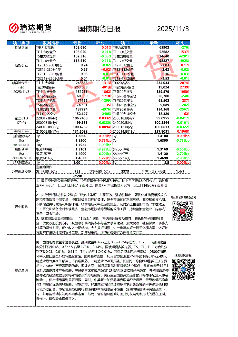 瑞达期货-国债期货日报-251103