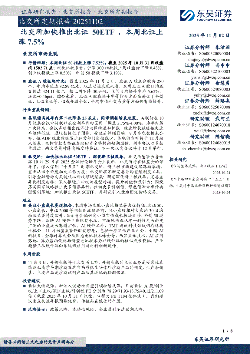 东吴证券-北交所定期报告:北交所加快推出北证50ETF,本周北证上涨7.5%-251102