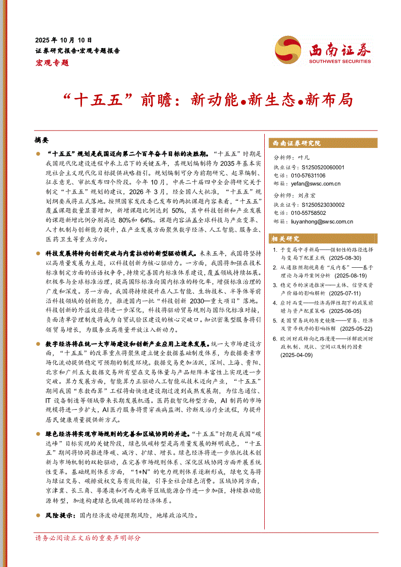 西南证券-“十五五”前瞻:新动能●新生态●新布局-251010