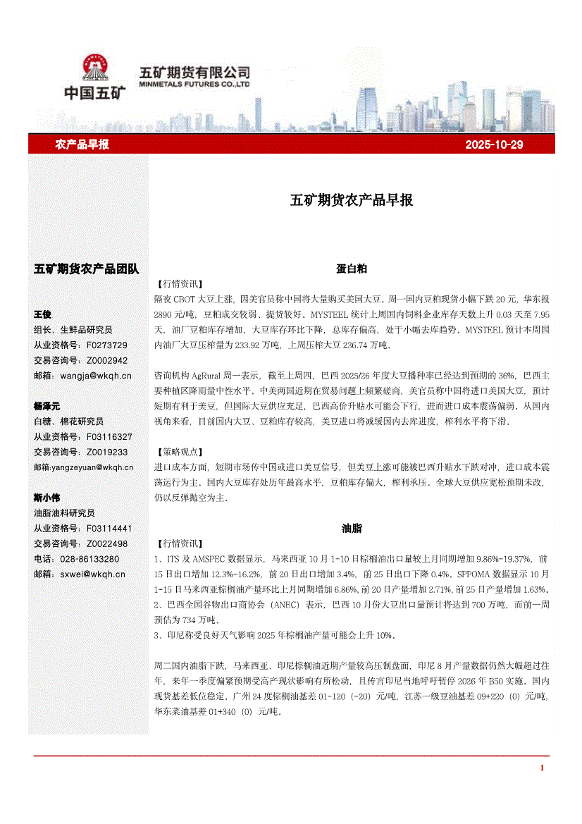 五矿期货-农产品早报-251029