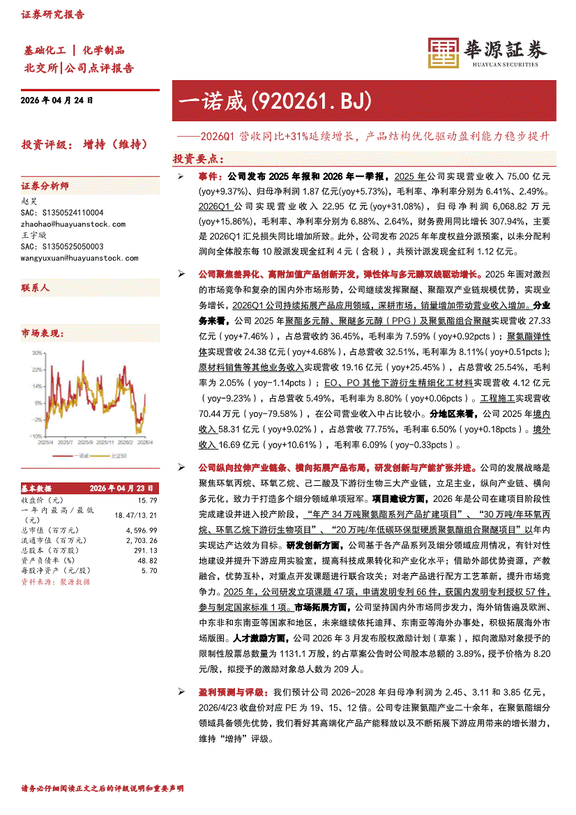一诺威:华源证券-一诺威-920261-2026Q1营收同比+31%延续增长,产品结构优化驱动盈利能力稳步提升-260424