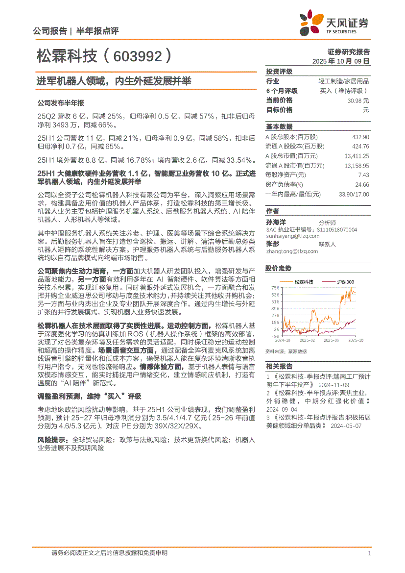 松霖科技:天风证券-松霖科技-603992-进军机器人领域,内生外延发展并举-251009