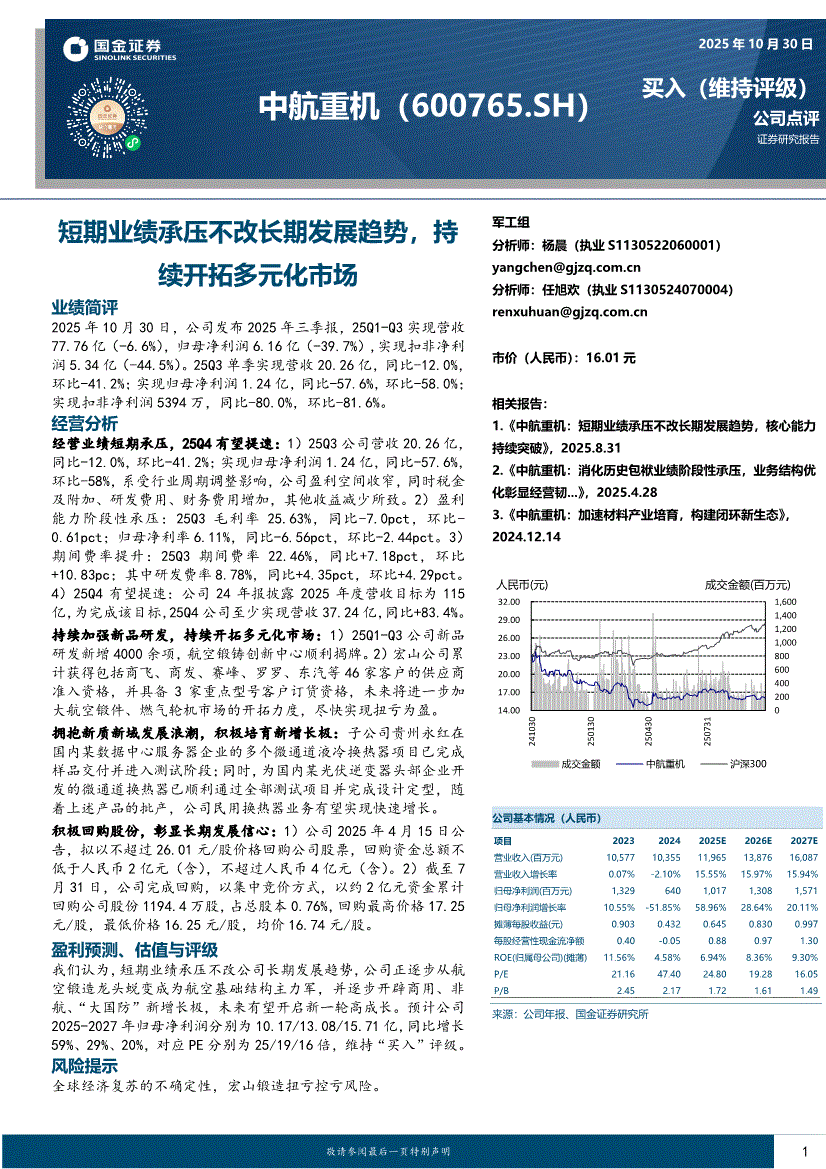 中航重机:国金证券-中航重机-600765-短期业绩承压不改长期发展趋势,持续开拓多元化市场-251030