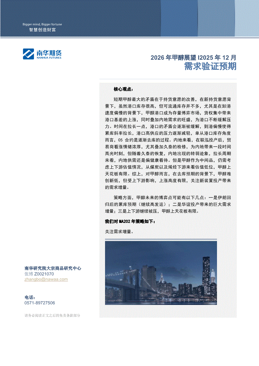 南华期货-2026年甲醇展望:需求验证预期-260105