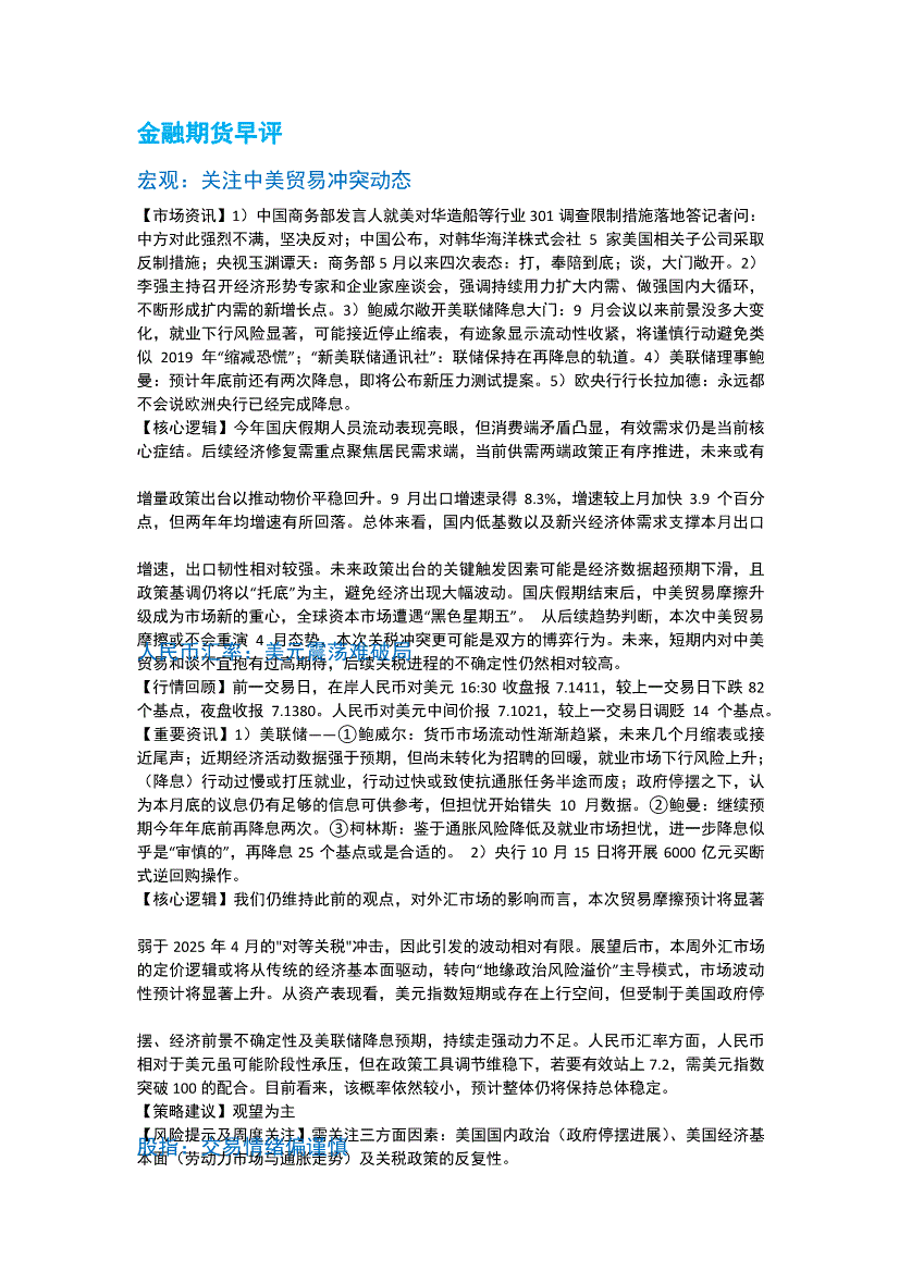 南华期货-早评-251015