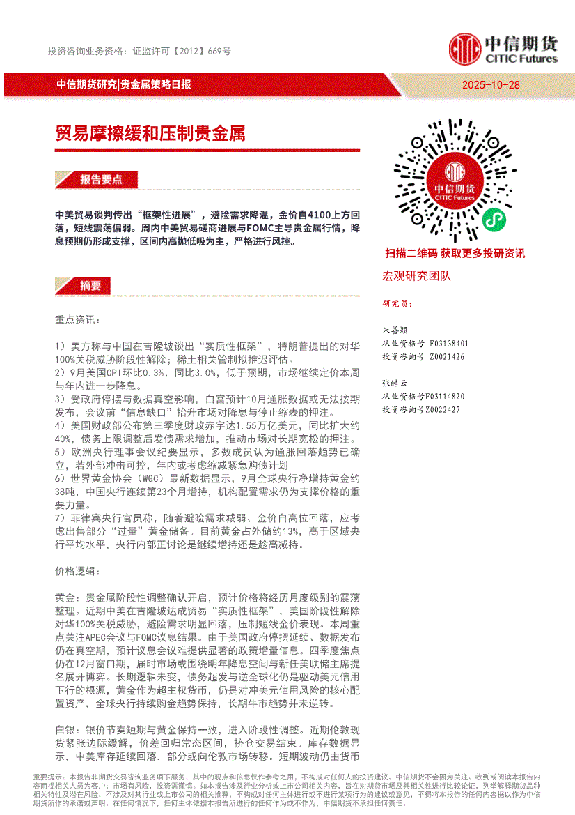 中信期货-贵金属策略日报:贸易摩擦缓和压制贵金属-251028