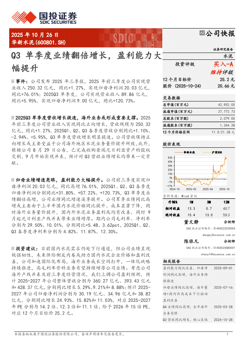 华新水泥:国投证券-华新水泥-600801-Q3单季度业绩翻倍增长,盈利能力大幅提升-251026