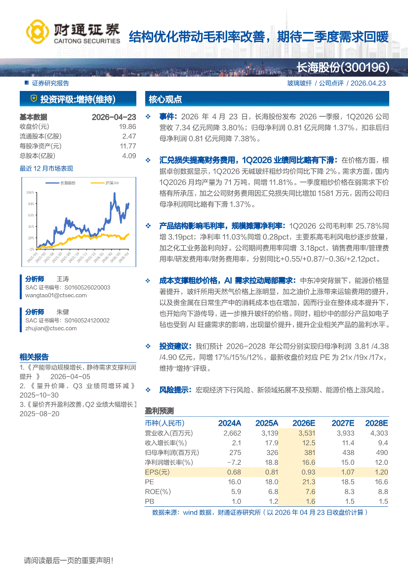 长海股份:财通证券-长海股份-300196-结构优化带动毛利率改善,期待二季度需求回暖-260423