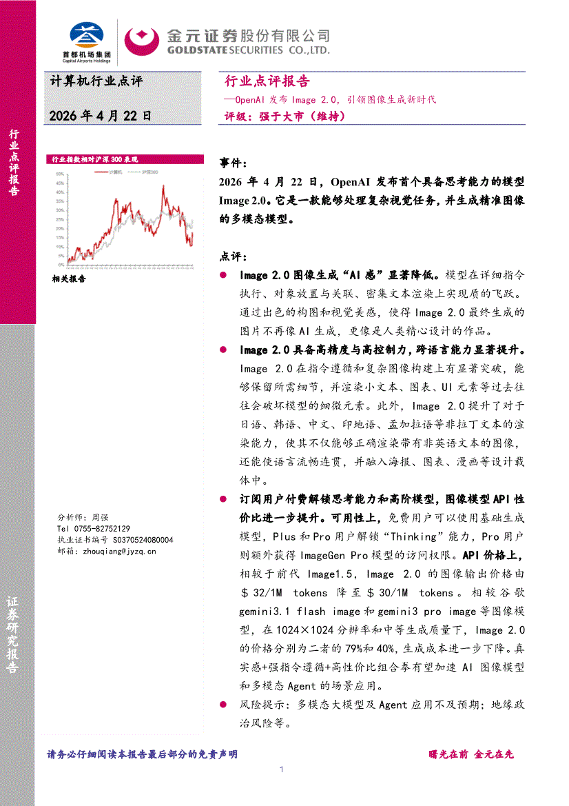 计算机行业:金元证券-计算机行业点评报告:OpenAI发布Image 2.0,引领图像生成新时代-260422