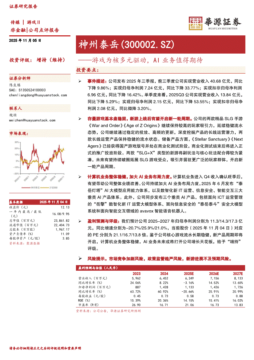 神州泰岳:华源证券-神州泰岳-300002-游戏为核多元驱动,AI业务值得期待-251105