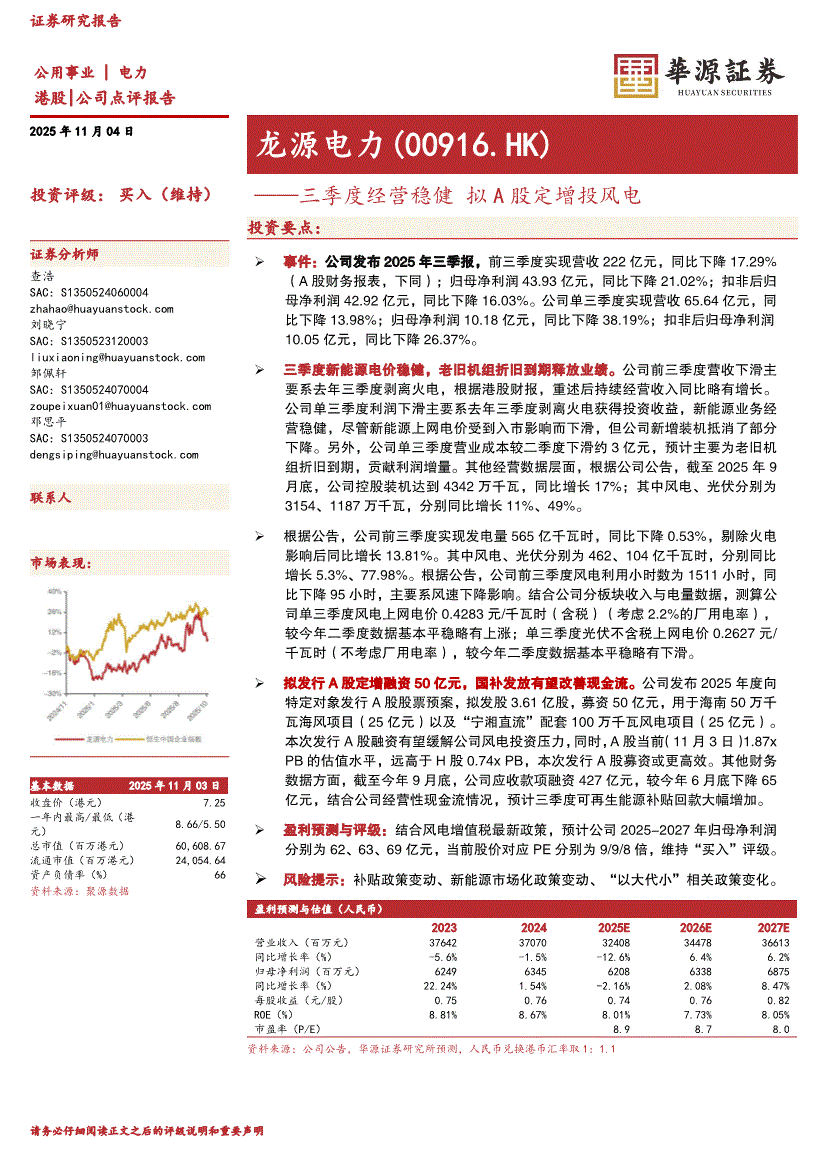 龙源电力:华源证券-龙源电力-0916.HK-三季度经营稳健,拟A股定增投风电-251104