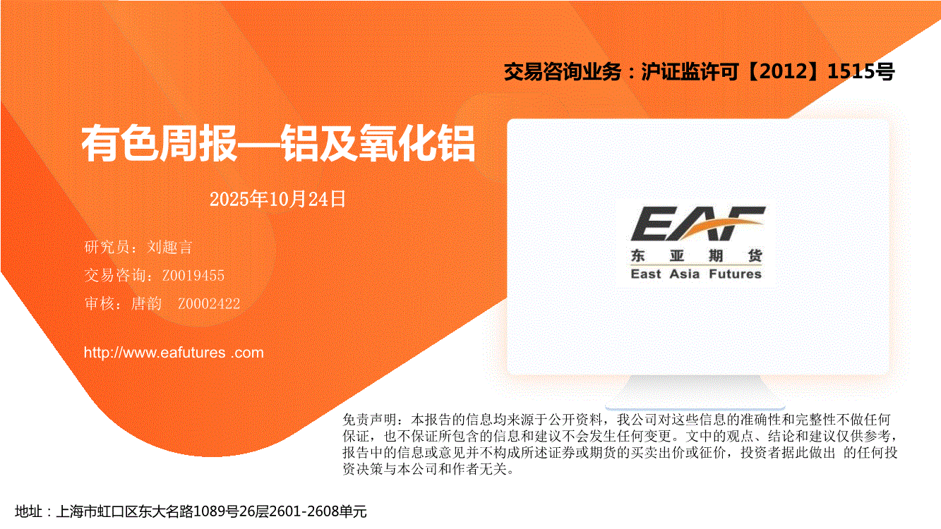 上海东亚期货-有色周报:铝及氧化铝-251024