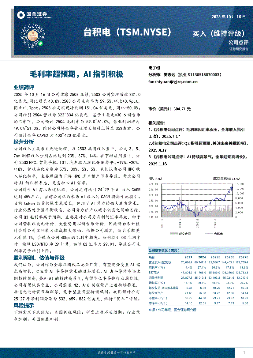 台积电:国金证券-台积电-TSM.US-毛利率超预期,AI指引积极-251016