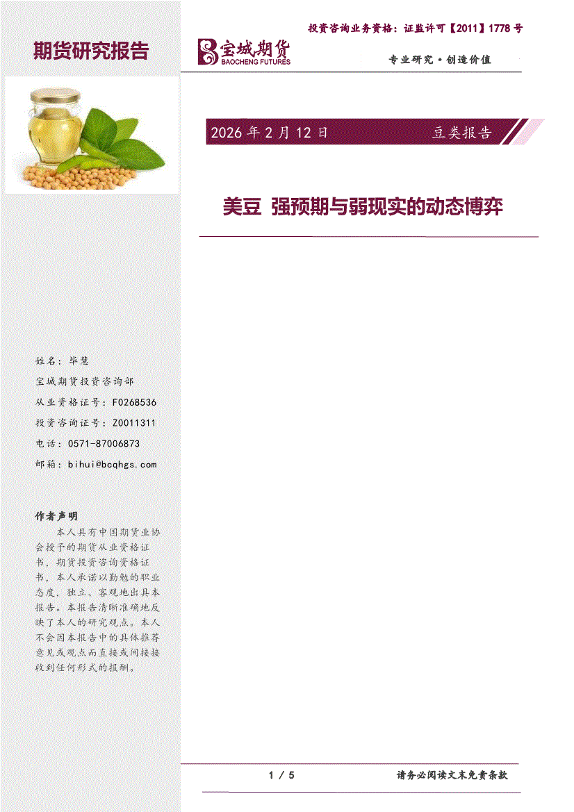 宝城期货-美豆:强预期与弱现实的动态博弈-260212