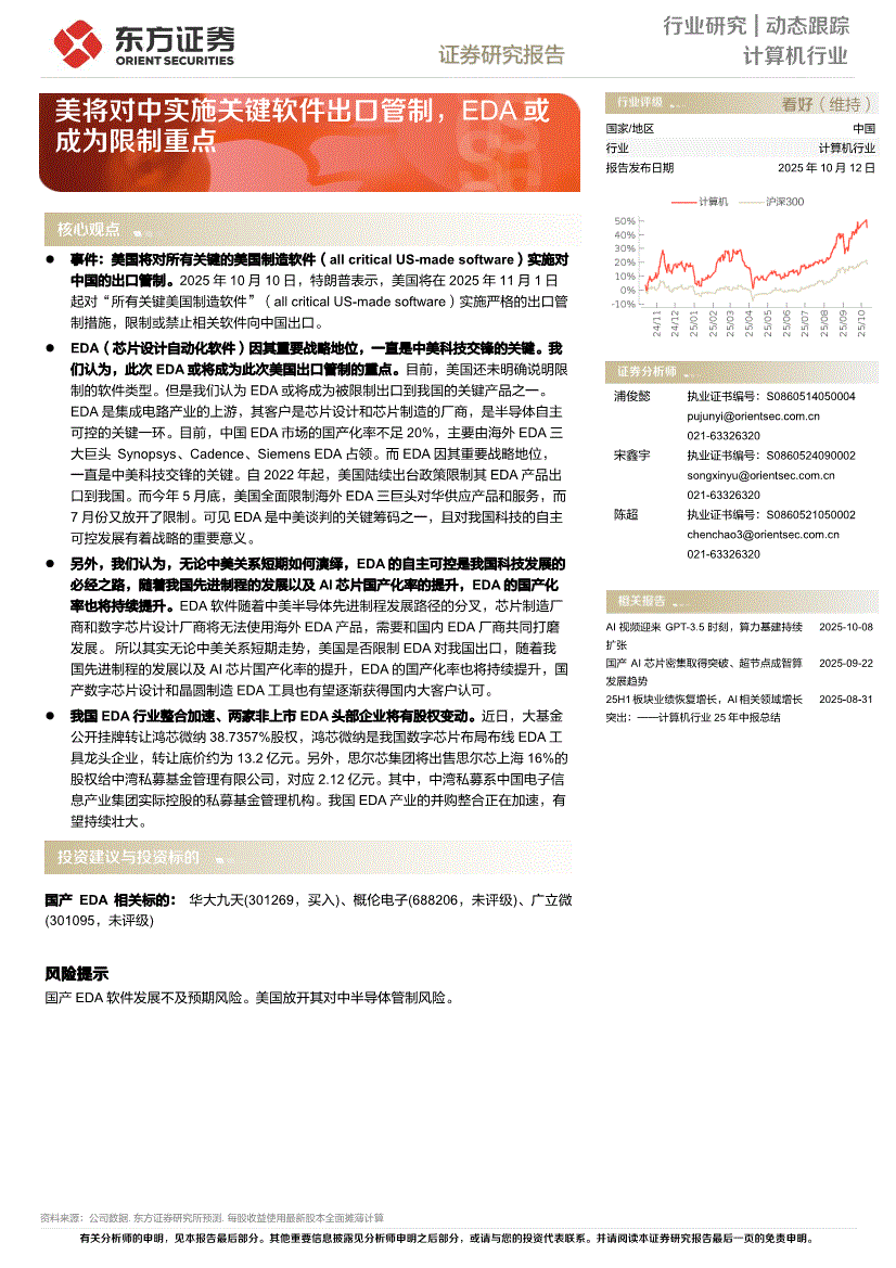 计算机行业:东方证券-计算机行业动态跟踪:美将对中实施关键软件出口管制,EDA或成为限制重点-251012