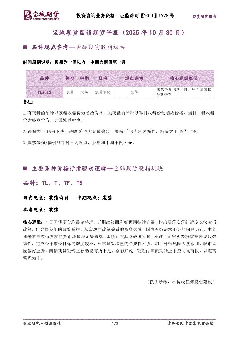 宝城期货-国债期货早报-251030