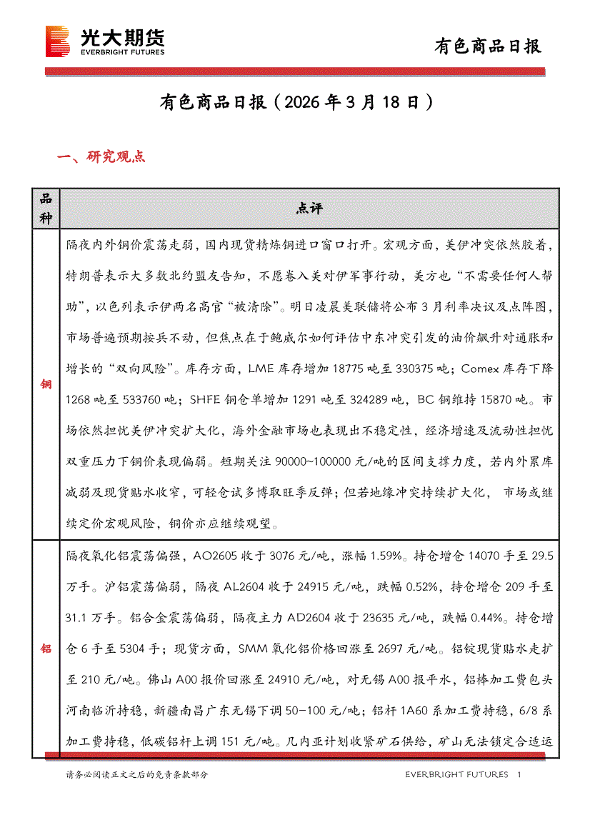 光大期货-有色商品日报-260318