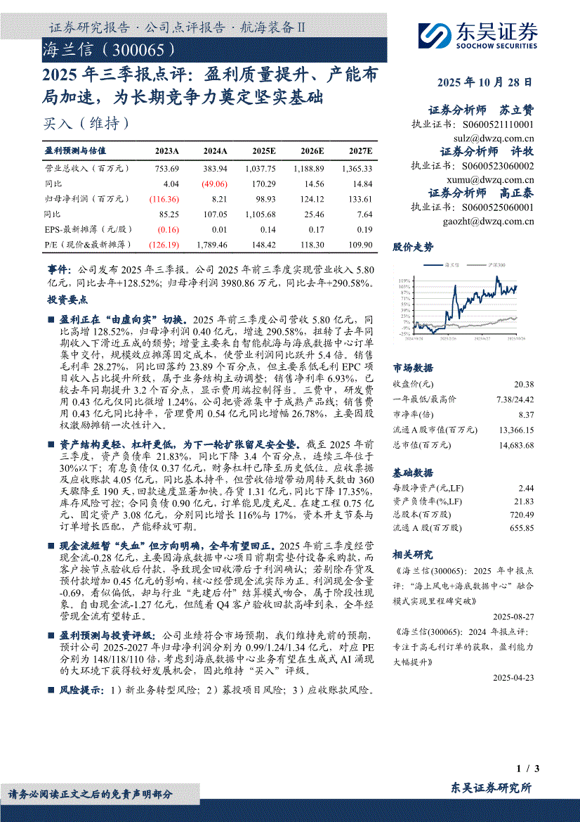 海兰信:东吴证券-海兰信-300065-2025年三季报点评:盈利质量提升、产能布局加速,为长期竞争力奠定坚实基础-251028