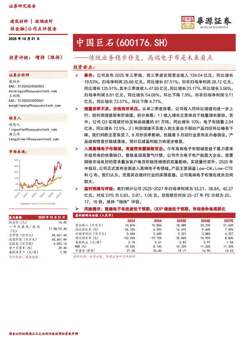 中国巨石:华源证券-中国巨石-600176-传统业务稳步修复,高端电子布是未来看点-251031