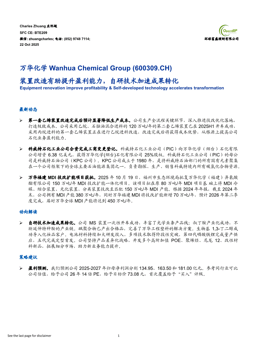 万华化学:环球富盛-万华化学-600309-装置改造有助提升盈利能力,自研技术加速成果转化-251022