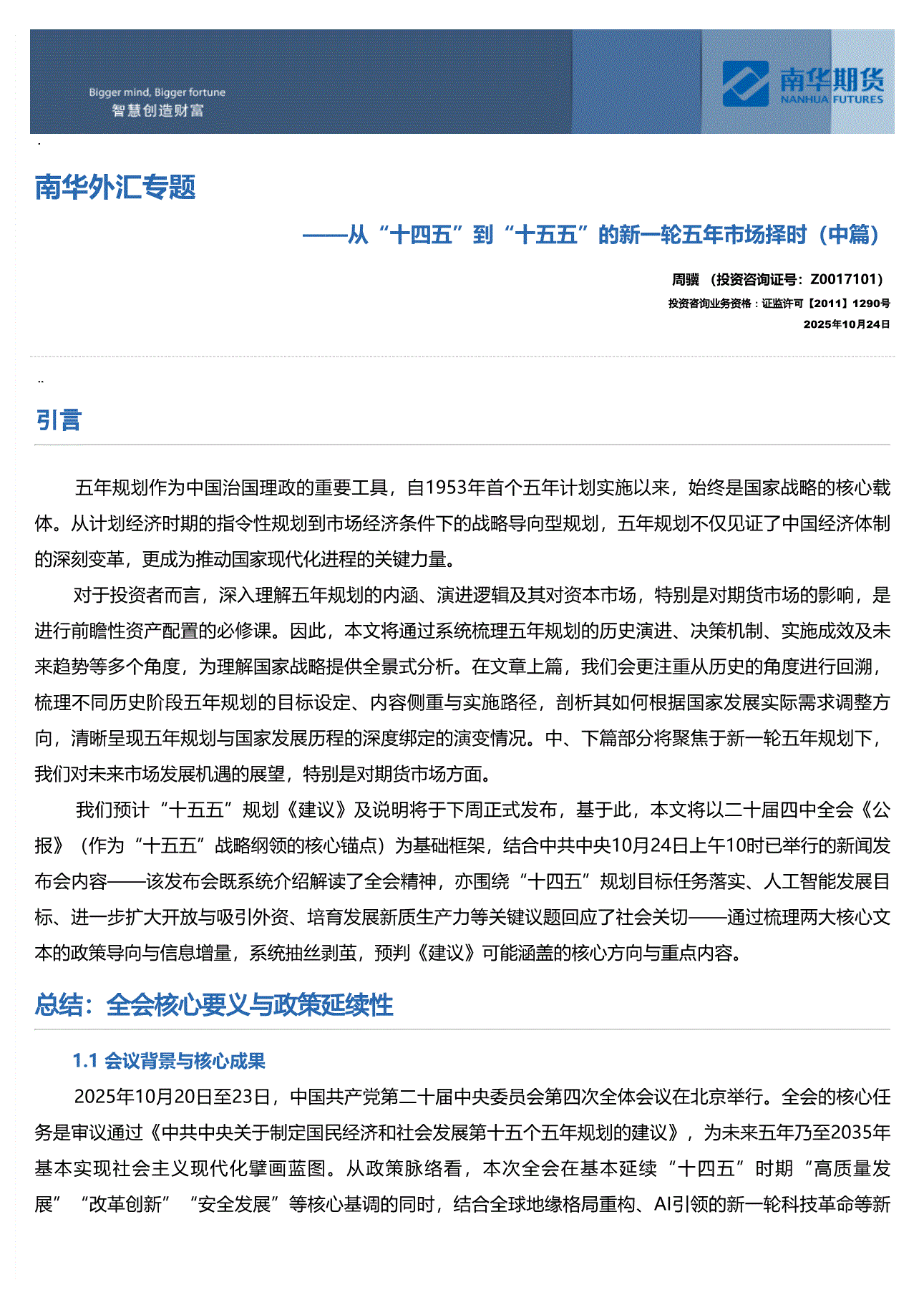 南华期货-外汇专题:从“十四五”到“十五五”的新一轮五年市场择时(中篇)-251024